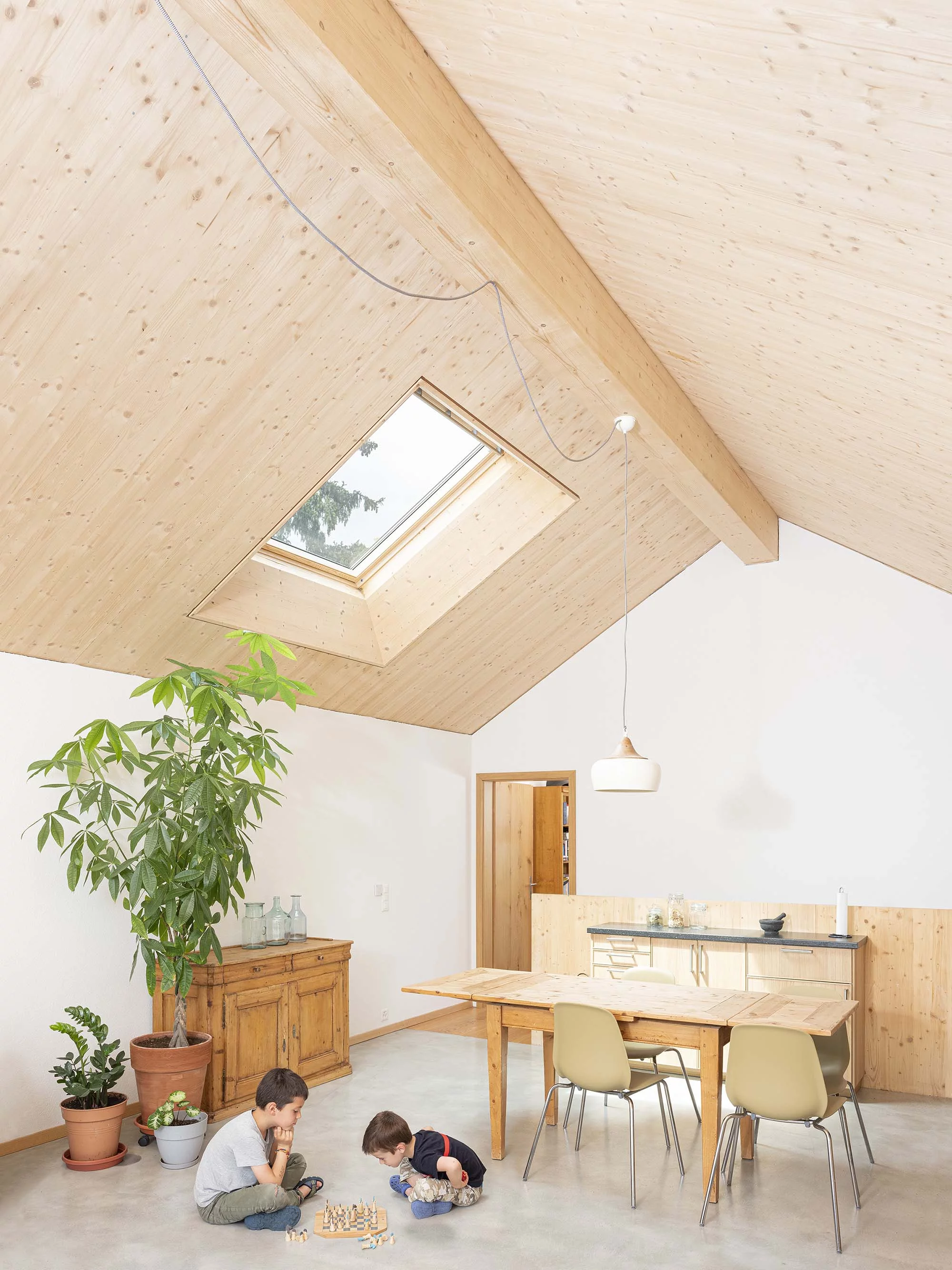 Le défi initial de ce projet a été la construction d’une nouvelle maison avec un budget très modeste et d'obtenir des espaces accueillants. Malgré l’emprise au sol réduite du bâtiment, une grande générosité d’espace est obtenue en plaçant les espaces de vie au premier étage, bénéficiant ainsi de tout le volume sous la toiture.
