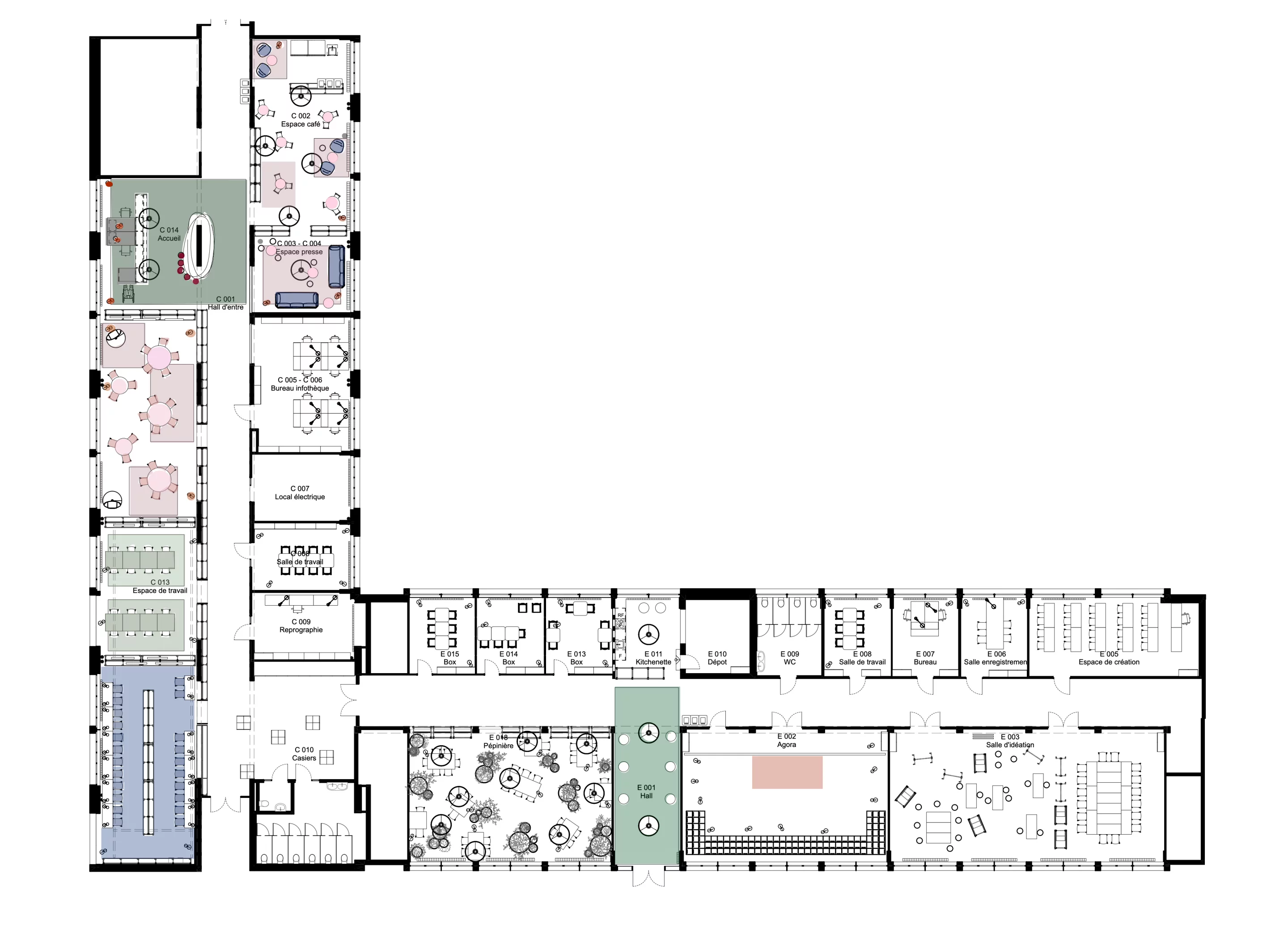 Une série d'ateliers participatifs avec les usagers a permis de réorganiser et optimiser les usages en disposant les différentes fonctions de manières cohérentes.